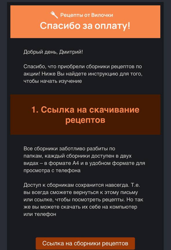 Спасибо за оплату, в течение 30 минут на вашу почту придут оплаченные материалы